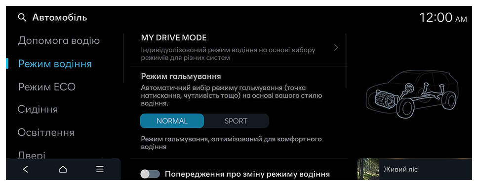 - Доступні налаштування можуть відрізнятися залежно від моделі автомобіля та комплектації.
