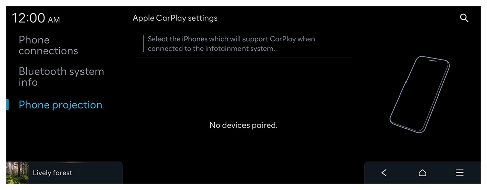 - On the Home screen, press Settings ► Phone connections ► Phone projection ► Apple CarPlay settings.